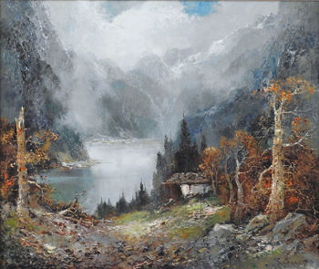 Home » Styles » Oil Painters Of America » Artists » Julie Davis » Willi Bauer Cabin In The Mountains